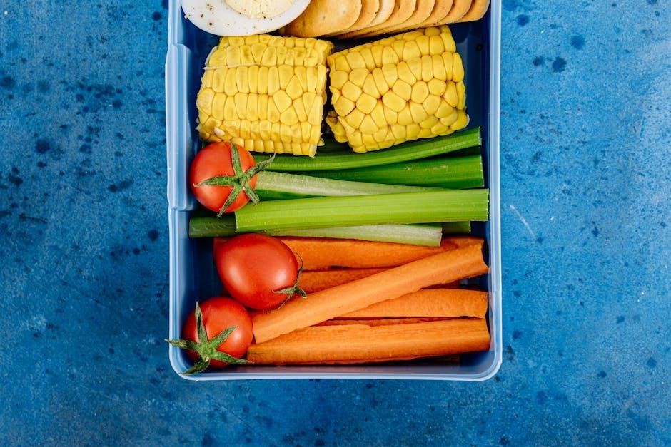 Lunch options include lentil soup with a side salad or turkey breast on whole-grain bread. Dinner suggestions frequently feature baked salmon with roasted vegetables or chicken stir-fry with brown rice. These plans consistently emphasize fiber-rich foods, lean proteins, and avoidance of high-fat, processed items, aligning with recommendations in comprehensive PDF guides;